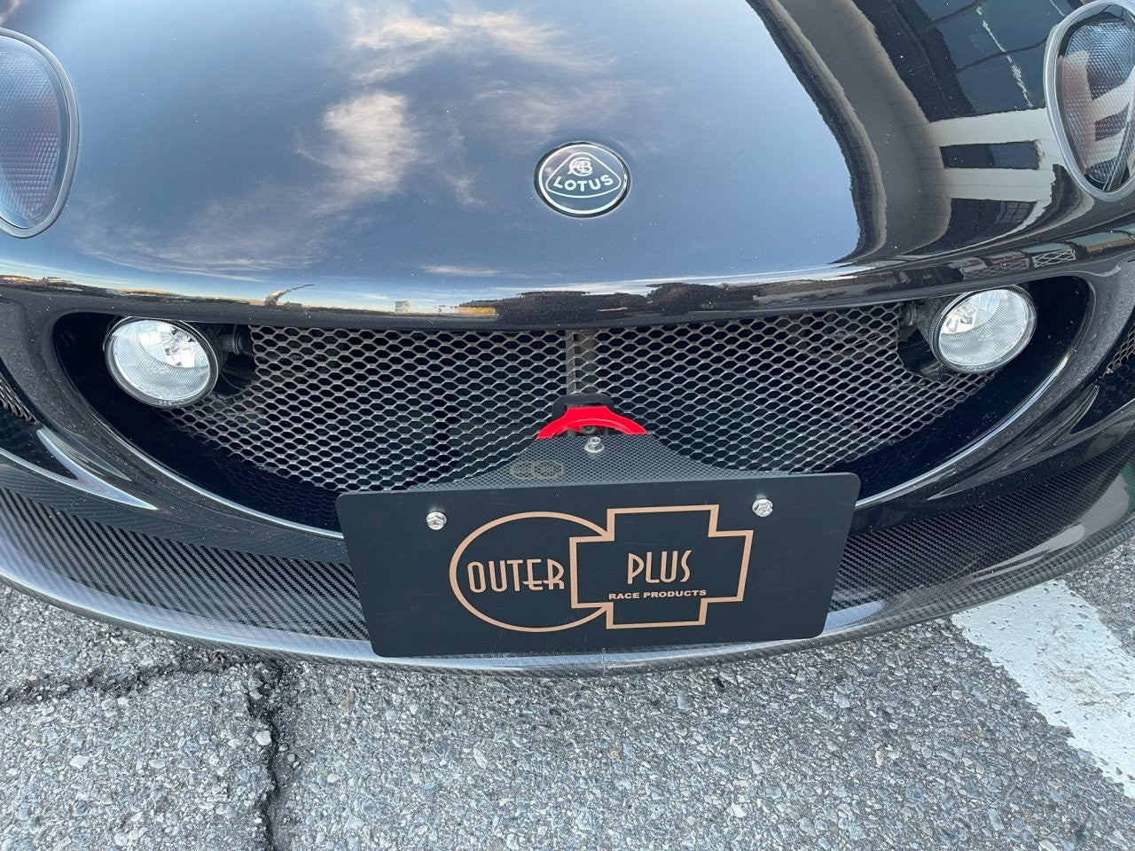 - JAEフロント牽引フック付きカーボンナンバーステー(レッドフック)